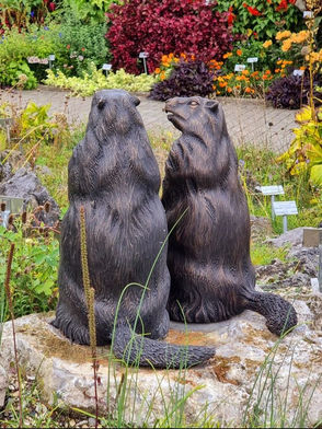Eins der beiden bronzenen Murmeltiere hat eine Höhe von 48cm. Das kleinere, dem großen zugewandte Murmeltier, ist 45cm hoch. Sie sind als Paar konzipiert und "im Gespräch" einander zugeneigt.